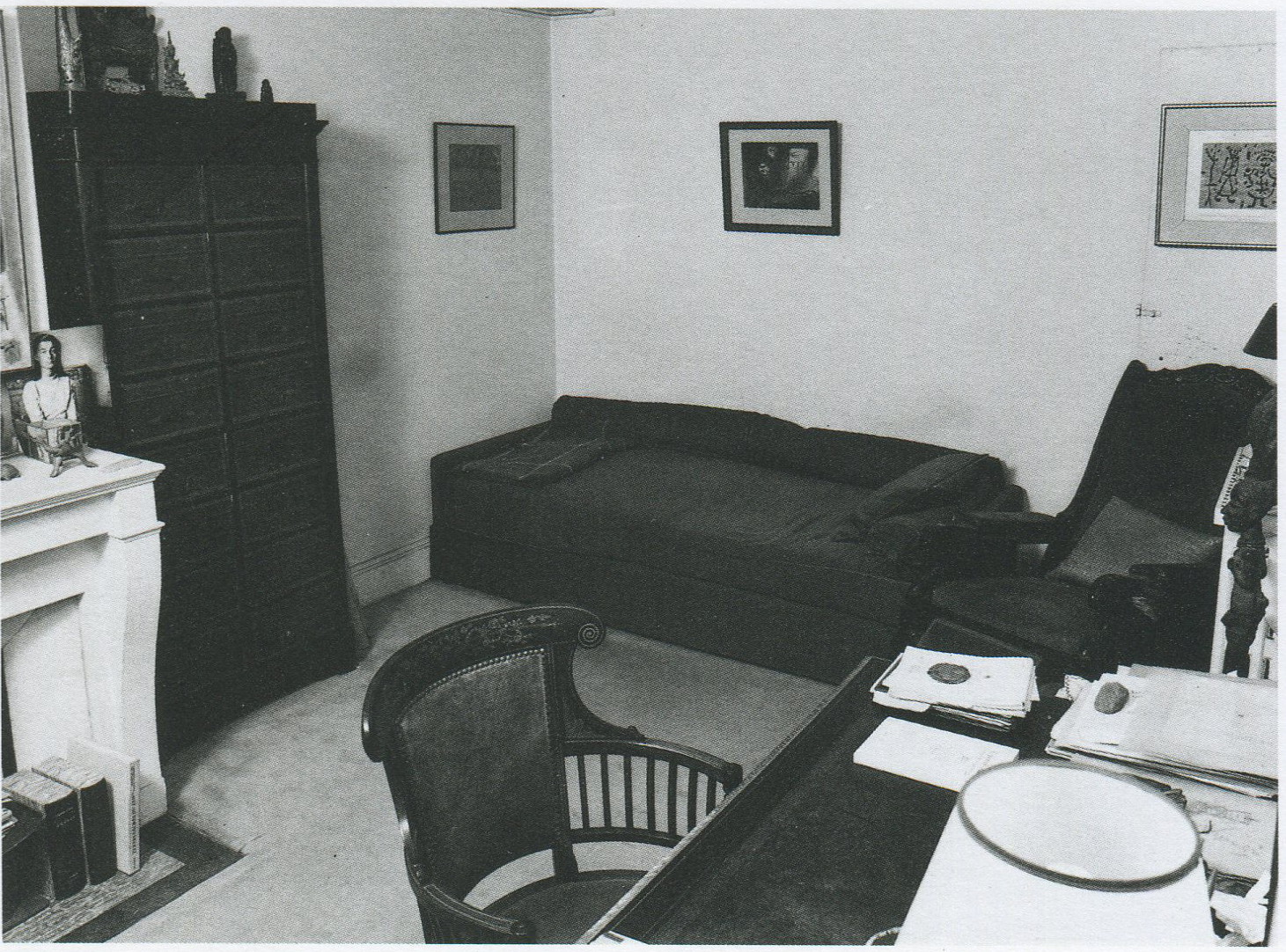 Freud の遺灰を収めた壺は,上の写真のように,高さ 1.5 m くらいの柱の上に置かれており,その近くの壁に作りつけられた棚には,Anna